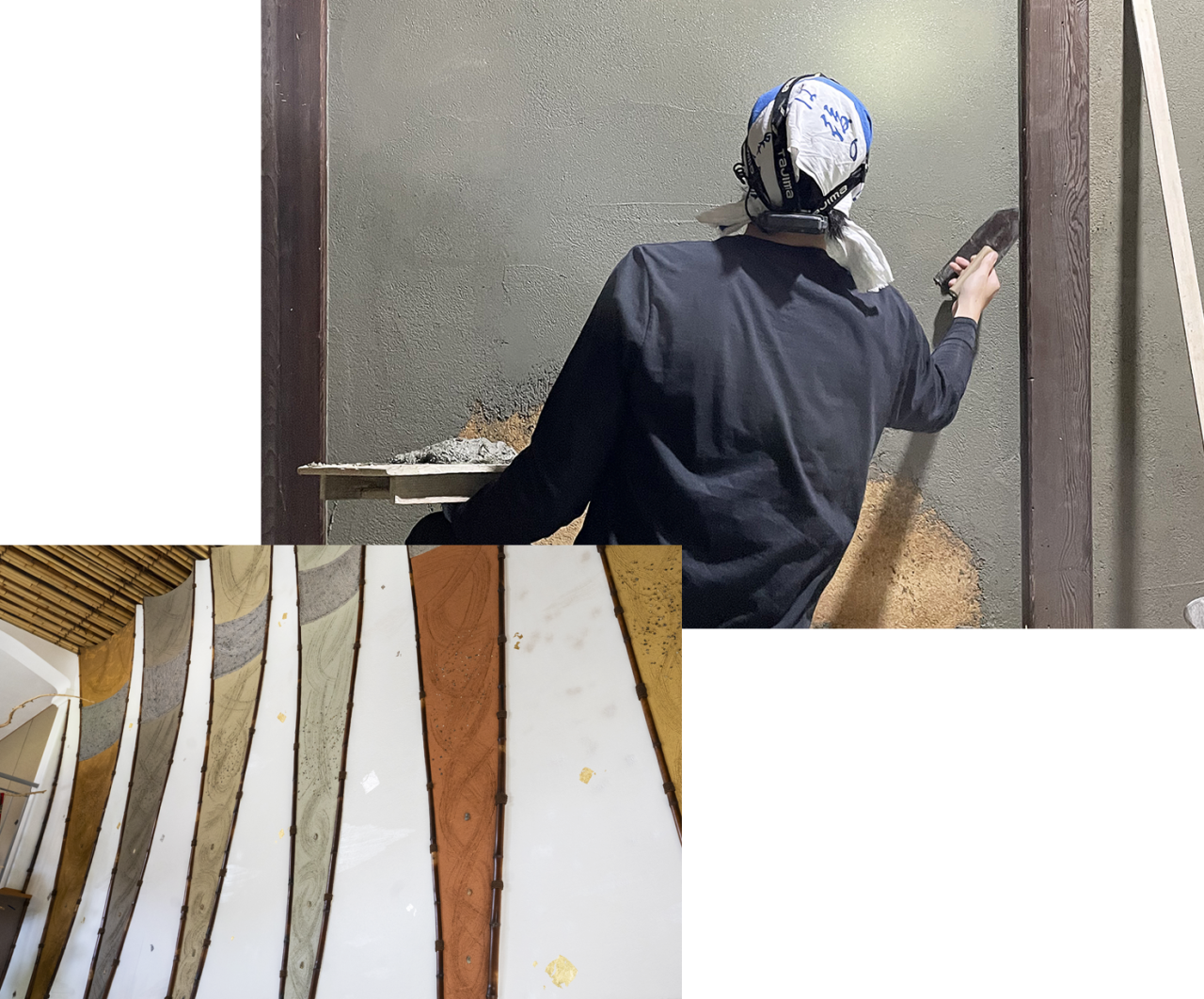 効率化の進んだ昨今の壁づくりとは異なり、私たちが手掛ける漆喰壁や土壁は、いわば一つひとつがオーダーメイドです。そのため、クライアントとの対話のあり方が重要です。古い文化財の修繕であっても、新たな壁づくりであっても、それは変わりません。 どのような目的や役割を担う壁なのか。印象を決める質感や色はどうか。文化的な文脈に照らして相応しい意匠か。この段階で、言葉や手間を惜しんでいては、ゴールを共有することはできません。